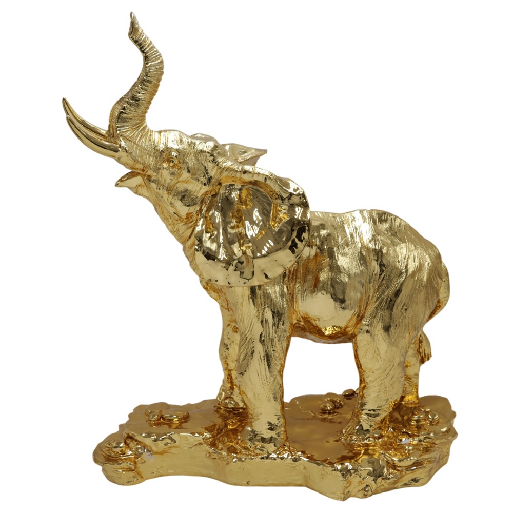 Objekti dekorues “Elephant”, i realizuar në rezinë me ngjyrë floriri dhe përmasa 40xH50 cm, është një aksesor që përfaqëson prestigj dhe luks. Me një dizajn të detajuar të elefantit, ky objekt simbolizon fuqinë dhe stabilitetin duke shtuar një prekje të veçantë dhe të rafinuar në hapësirën tuaj. Me anë të ngjyrës së florinjtë, reflekton dritë dhe krijon një atmosferë të ngrohtë. Materiali rezinë është rezistente dhe i lehtë për tu mirëmbajtur. Ju mund ta përdorni si një objekt dekorues në ambiente të ndryshme dhe kompozimet që do të realizoni duke i dhuruar pompozitet. Shtojini ambienteve tuaja një prekje unike që nuk do ta hasni kudo.