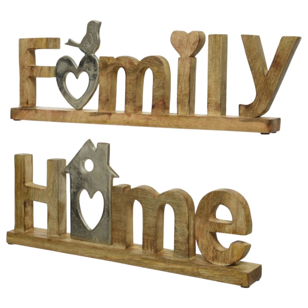 Ky objekt dekorues me mbishkrimin "Family", i punuar me kujdes nga druri në ngjyrë kafe natyrale, është një shprehje e ngrohtësisë dhe dashurisë. Me përmasa 30x5xH17 cm, ai është perfekt për t’u vendosur mbi një raft, komodinë apo konsolë, duke sjellë një ndjesi harmonie dhe përkatësie në çdo hapësirë. Ngjyra e ngrohtë dhe tekstura e drurit i japin atij një pamje autentike dhe të këndshme, ndërsa dizajni i thjeshtë por e bën një element dekorativ të veçantë. Një zgjedhje ideale për ta bërë shtëpinë edhe më të dashur dhe mikpritëse.