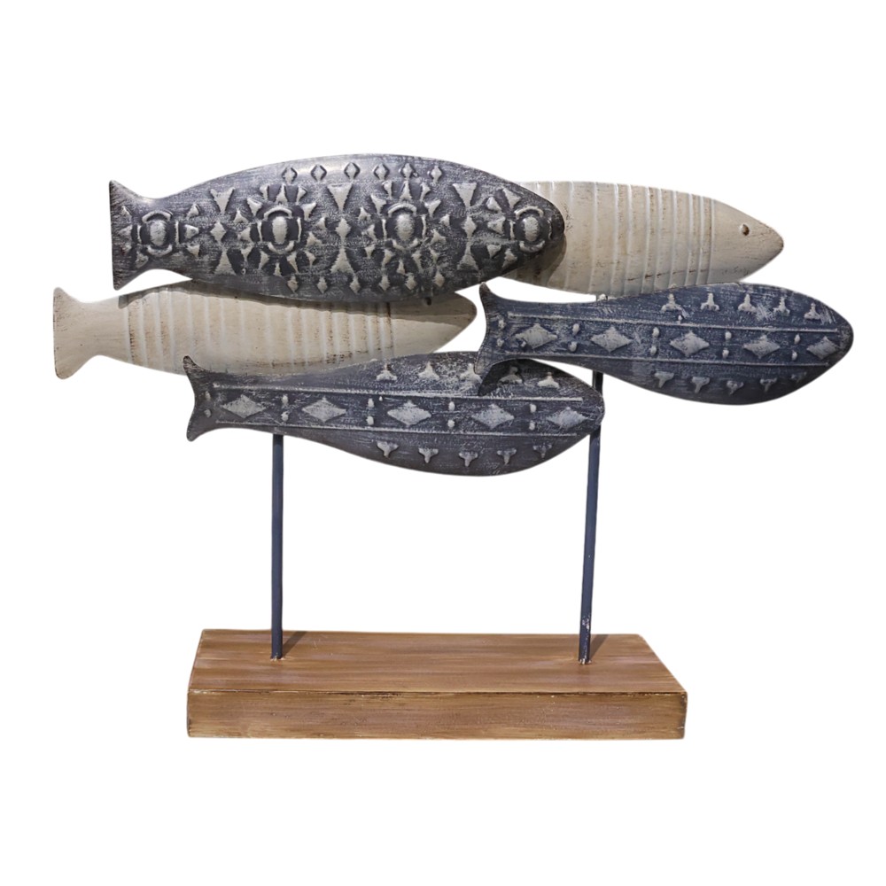 Po vlerësoni:Objekt dekorues, Fish, metalike/druri, blu/e bardhë/kafe, 61x13xH41.5 cm
