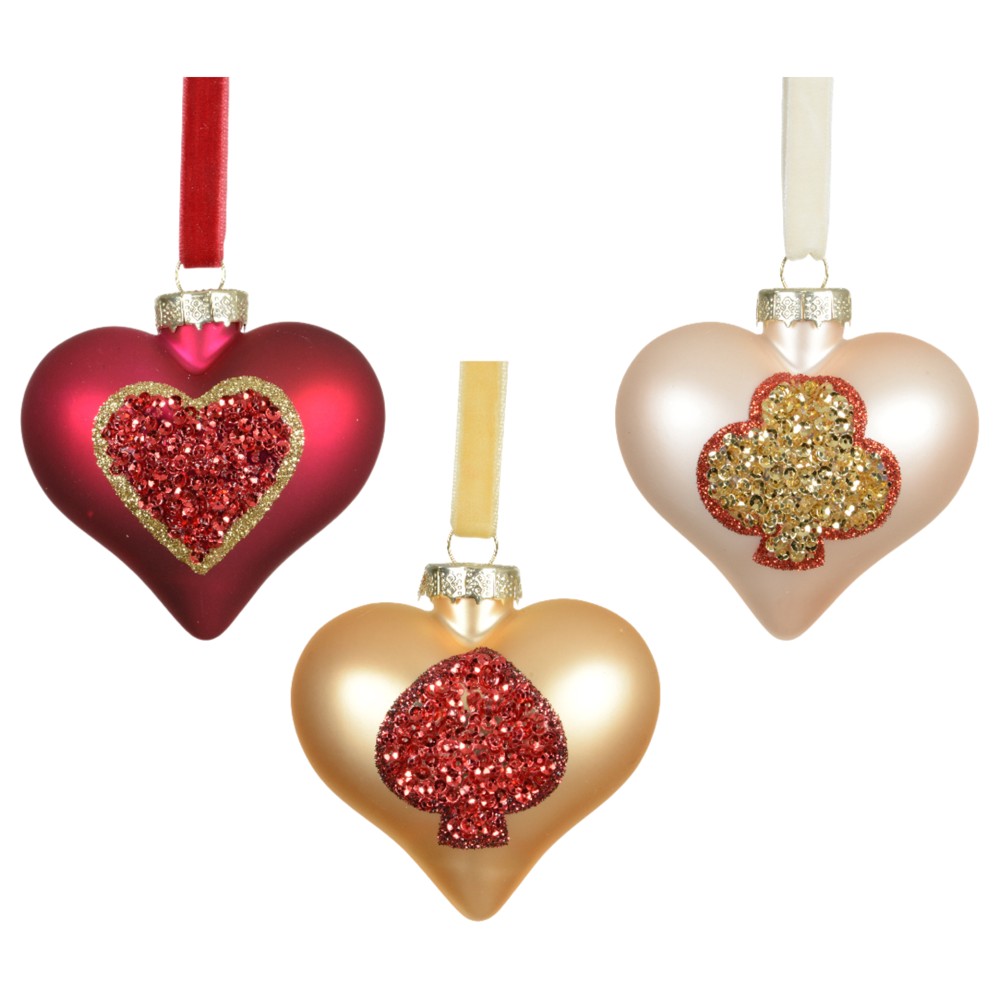 Po vlerësoni:Objekt dekorues me varje, qelq, Heart, ngjyre e kuqe, gold, e bardhe, L.8cm x W.4.5cm x H.8.7cm