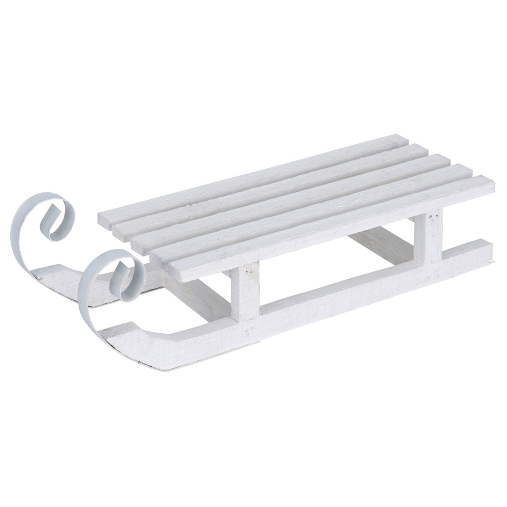 Slite prej druri ngjyrë e bardhe, gjatësi 40 cm eshte nje aksesor qe do ju zbukuroje atmosferen e Krishtlindjeve. Duke ju kujtuar femijerine tuaj duke luajtur me debore do jet nje tjeter aksesor dekorues i ketyre festave. Mund të përdoret për të vendosur dhuratat qe do i jepni femijeve tuaj keto festa.