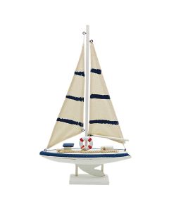 Varka dekorative me një punim artistik, vjen për të shfaqur personalitetin tuaj dhe për të përmirësuar pamjen e çdo hapësire të ambjentit ku do vendoset. Ajo do ta përmirësojë dhomën e ndenjes të frymëzuar nga motive bregdeti, kur shfaqet në tavolina ose rafte ekspozitori. E dizajnuar nga material druri dhe me ngjyrat e saj e bardhë/blu ajo do te jete një pikë fokusi qëndror në çdo ambjent.