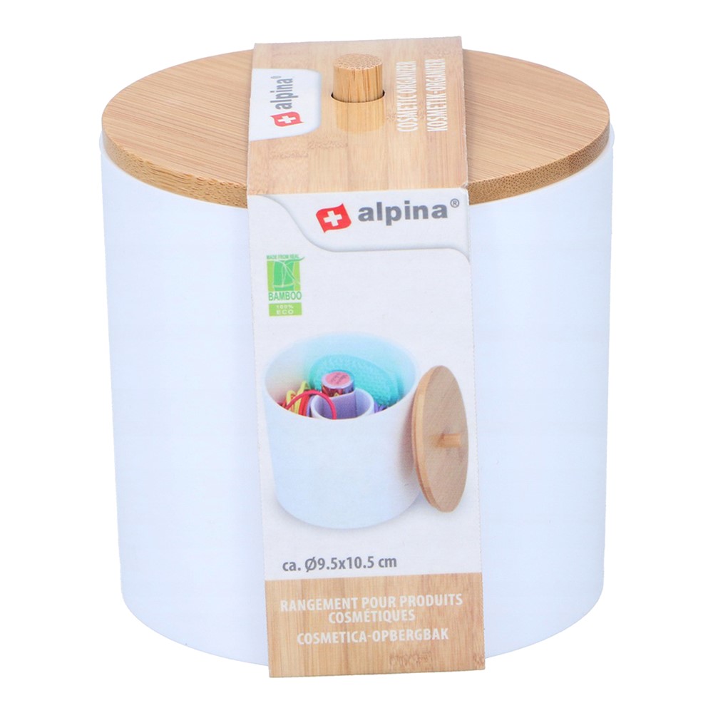 Organizator kozmetike me kapak bambu. I mirë për ruajtjen e tamponëve të pambukut, kozmetikës dhe bizhuterive. Këto kuti mund të mbahen pa kapak. Të papërshkueshme nga uji dhe rezistente ndaj lagështirës.