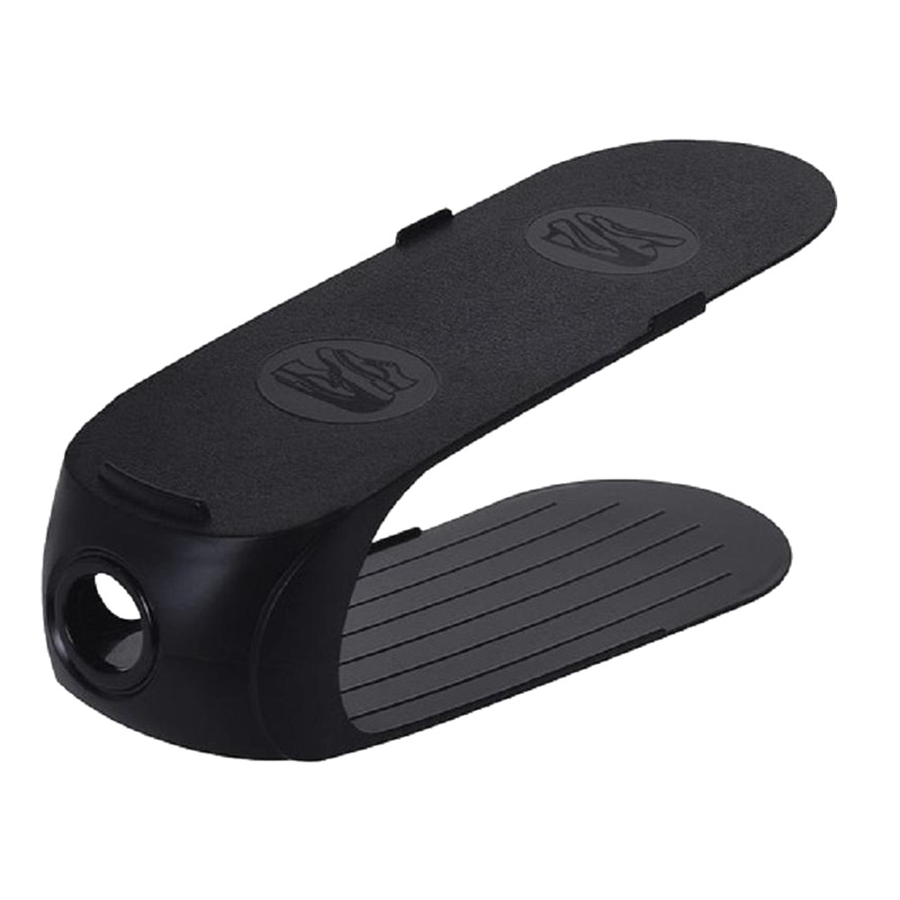 Organizues për këpucë, prej materiali polipropileni, në ngjyrë të zezë, me lartësi dhe kënd të rregullueshëm. Ky produkt lejon menaxhimin e hapësirave të kufizuara në garderobë, duke ndihmuar në organizimin e këpucëve. Përdoret për të gjitha llojet e këpucëve, është i lehtë dhe praktik në përdorim dhe mund të pastrohet lehtësisht.