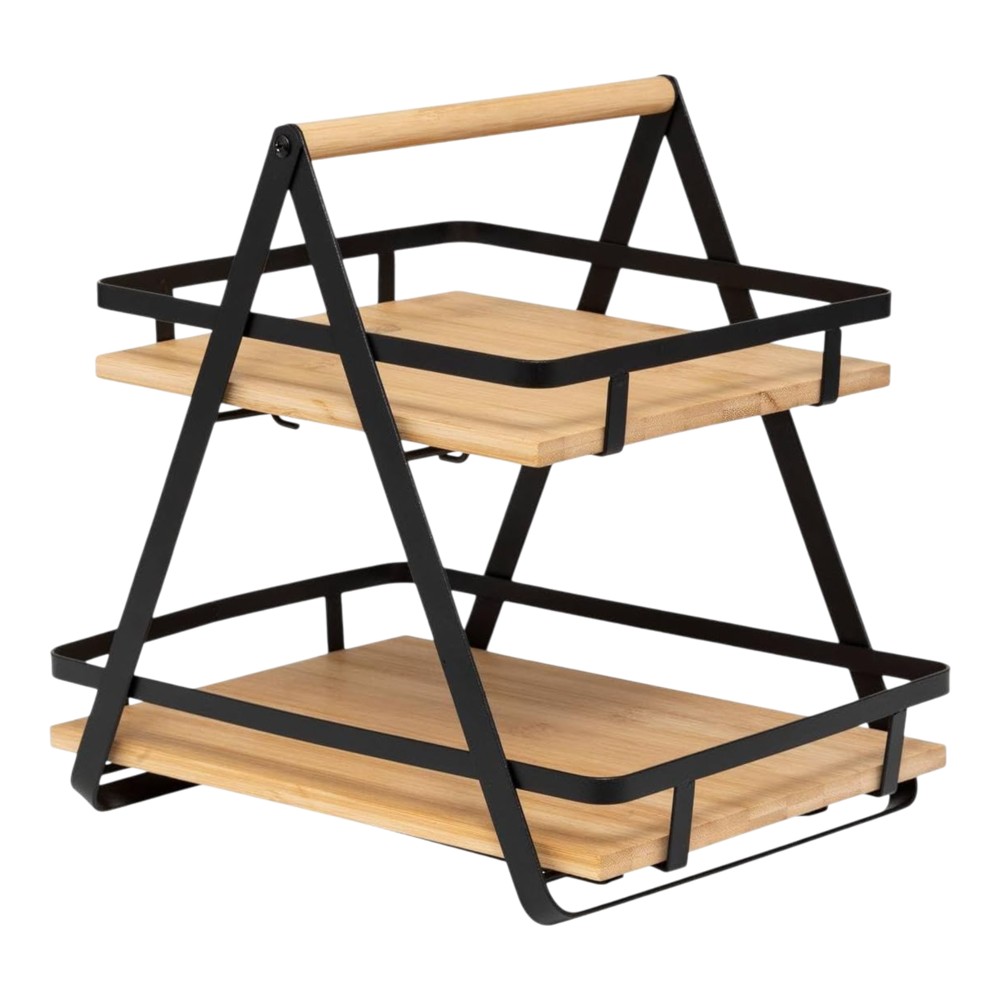 Organizues rafti me 2 kate, metalike/bambu, natyrale/e zezë, 30.5x22.5x29 cm