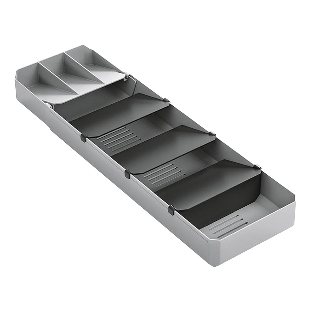 Organizuesi i sirtarit në kuzhinën tuaj ofron hapësirën optimale për mbajtjen e lugëve të çajit, supës, pirunëve, thikave dhe pjesës së ndryshme të servirjes. Me këtë ndarës të rregullueshëm , ju mund të bëni një sirtar të veçantë për shtëpinë tuaj, duke organizuar me rregull çdo gjë brenda tij. Vjen në material plastik i cili është i lehtë në përdorim dhe pastrim.