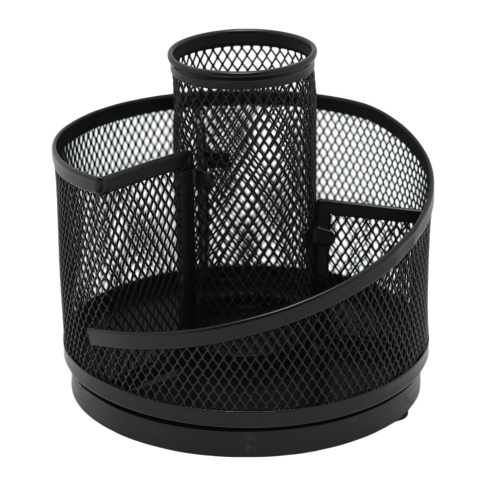 Mbajini tavolinat e punës të rregullta dhe elegante me këtë organizues stilolapsash me rrotullim. I punuar nga material metalik rezistent, ky organizues ofron qëndrueshmëri dhe jetëgjatësi, duke qenë zgjidhja ideale për zyra, shkolla apo përdorim personal. Dizajni praktik me rrotullim ju lejon të keni akses të lehtë dhe të shpejtë në çdo stilolaps, laps apo aksesor tjetër, pa humbur kohë. Ngjyra e zezë klasike i jep një pamje profesionale dhe moderne hapësirës tuaj të punës.