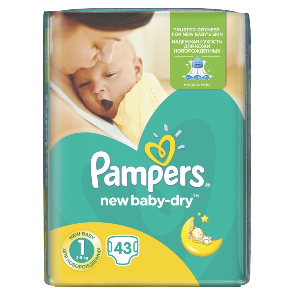Pelenat Pampers New Baby sigurojnë thatësi të lëkurës, marrin frymë dhe në anën e brendshme të tyre përdoret teknologjia e locionit qetësues. Ato janë të pajisura me teknologjinë Complete Care, falë së cilës shtresa e sipërme unike e pelenës ka vrima më të mëdha që thithin më mirë se çdo pelenë tjetër. Struktura e veçantë e shtresës së brendshme sipërfaqësore përshpejton lëvizjen e lagështisë larg lëkurës së foshnjës në bërthamën ultra-absorbuese, e cila e shndërron lëngun në një xhel për të parandaluar që lagështia të depërtojë përsëri në lëkurën e foshnjës. Rripat elastikë të fiksimit në anët ndihmojnë në parandalimin e rrjedhjeve. Paketimi përmban 43 copë pelena të destinuara për një fëmijë me peshë 2-5 kg.
