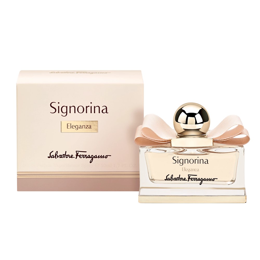 Eau de parfum (EDP) for women, Signorina Eleganza, Salvatore Ferragamo, glass, 50 ml, cream and gold, 1 piece