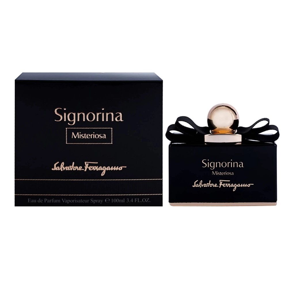 Parfum për femra, Salvatore Ferragamo, Signorina Misteriosa, EDP, qelq, 100 ml, e zezë dhe gold, 1 copë