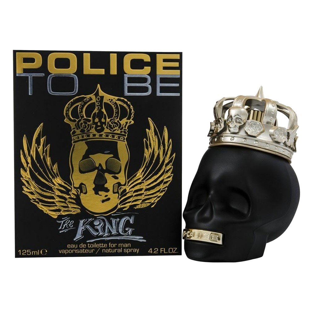 Eau de toilette (EDT) per meshkuj, me përqendrim 5-15 % të vajrave esencialë (parfum). Police To Be The King është paraqitur në një shishe të zezë mat në formë kafke dhe me krenari mban një kurorë të artë verbuese. Ftohtë dhe gjallëruese në fillim, kjo aromë dinamike evoluon drejt një gjurmë druri, aromatike prej druri qelibar dhe lesh kashmiri, të përzier me një nuancë livande të butë dhe aroma që sjellin një shpërthim freskie. Gradualisht, aroma nxehet në zemrën e drurit dhe rrëshirave, e përforcuar me kristale të shijshme të luleve portokalli, duke lënë një gjurmë të parezistueshme të aromës pluhur.. Të spërkatet 12-18 cm larg trupit, ndërsa për një aromë më të fortë të aplikohet në kyçet e duarve, në qafë dhe parakrahë.