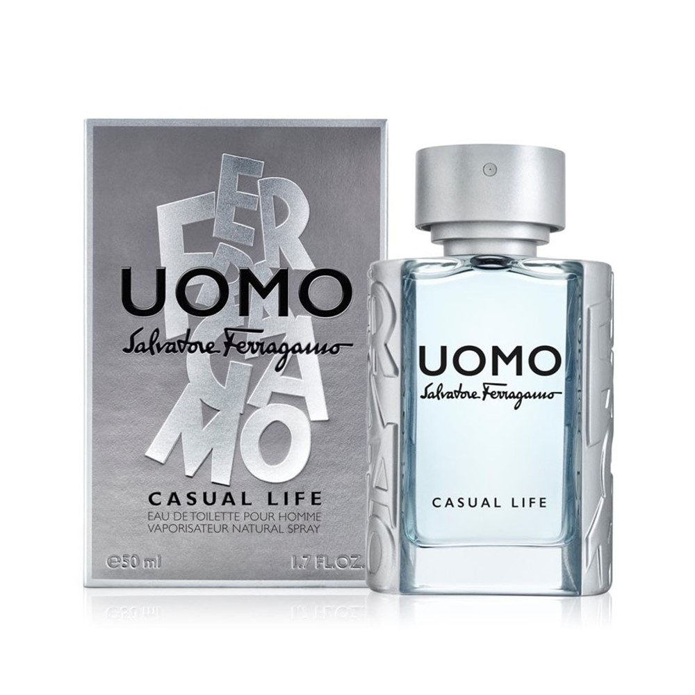 Parfum për meshkuj, Salvatore Ferragamo, Uomo Casual Life, EDT, qelq, 50 ml, argjend, e kaltër dhe transparente, 1 copë