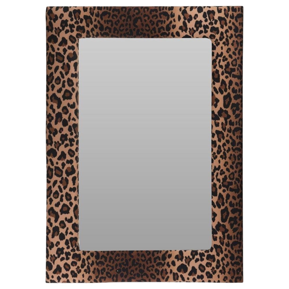 Pasqyra me kornizë druri dhe e veshur me material tekstili me motive leopardi, është një element dekorues si për zyrat, restorantet apo edhe dyqanet. Pasqyra është në formë drjtkëndore dhe me dimensione 50x70 cm që përshtatet në mënyrë perfekte me hapësira të mëdha të dhomave të ndenjes, korridoreve apo dhomave të gjumit. Kjo pasqyrë do të shtojë një karakter unik në ambinetet tuaja të brendshme, falë detajeve moderne që do t'i rezistojnë sezoneve të ndryshme. Ajo është e pershtatshme si për ambinete me stil kalasik ashtu edhe modern. Një objekt me stil unik që do të tërheqë menjëherë vëmendjen e kujtdo.