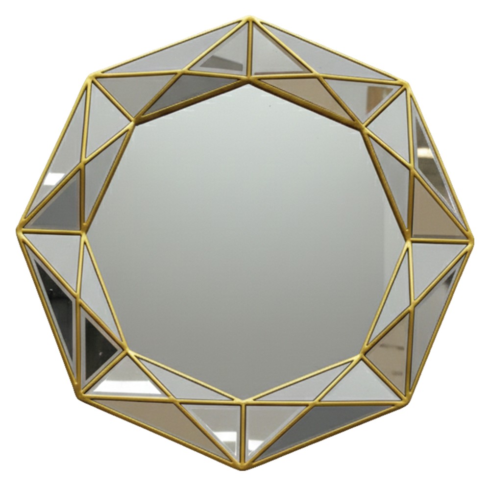 Decorative mirror, metal/glass, gold color, Dia. 80 cm