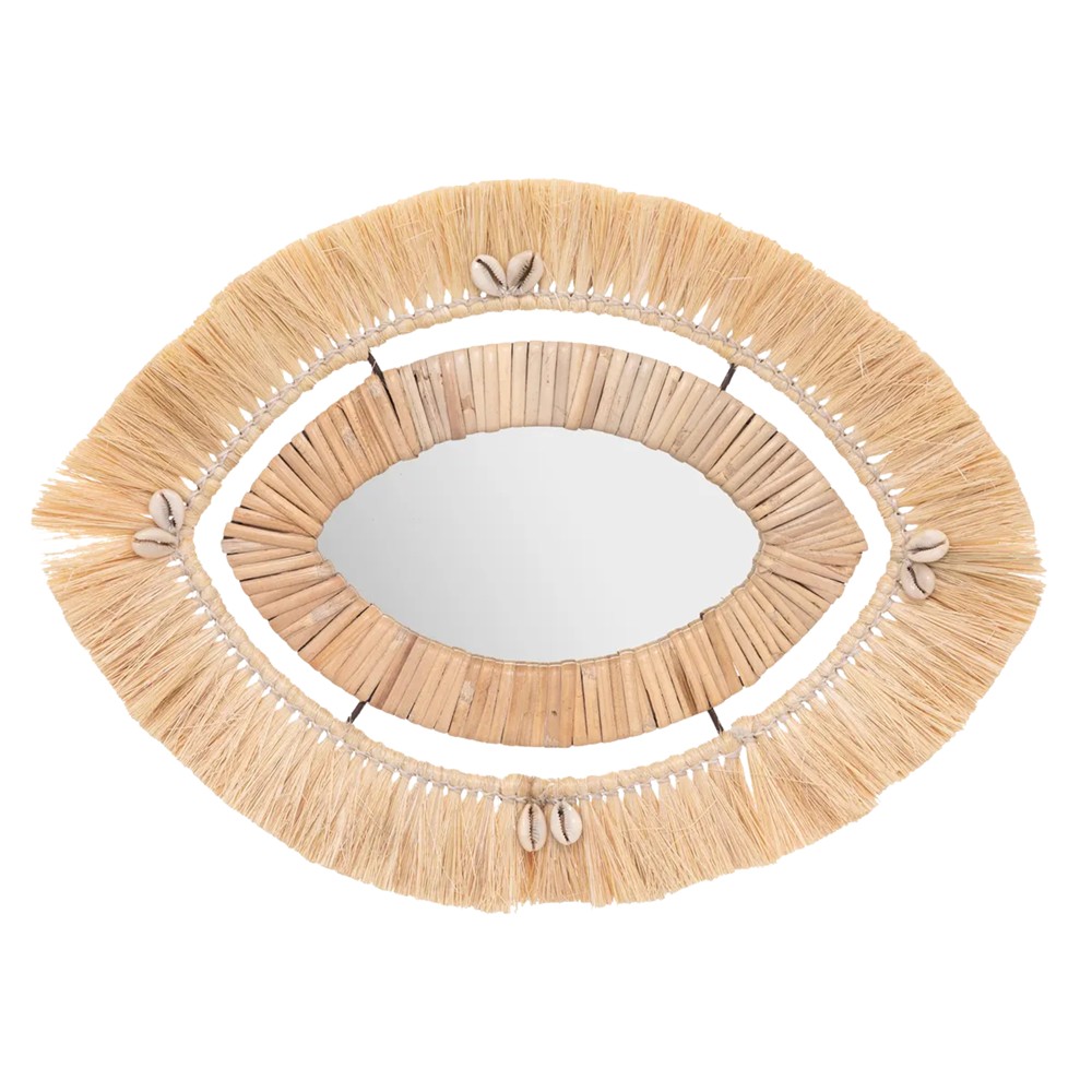 Pasqyrë dekorative, Tropical, xham/kashtë raffia, natyrale, 44xH31 cm