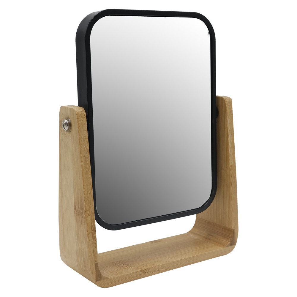 Po vlerësoni:Pasqyrë kozmetike me mbajtëse, xham/bambu, e zezë/bambu natyrale, 15.5x6x21.5 cm