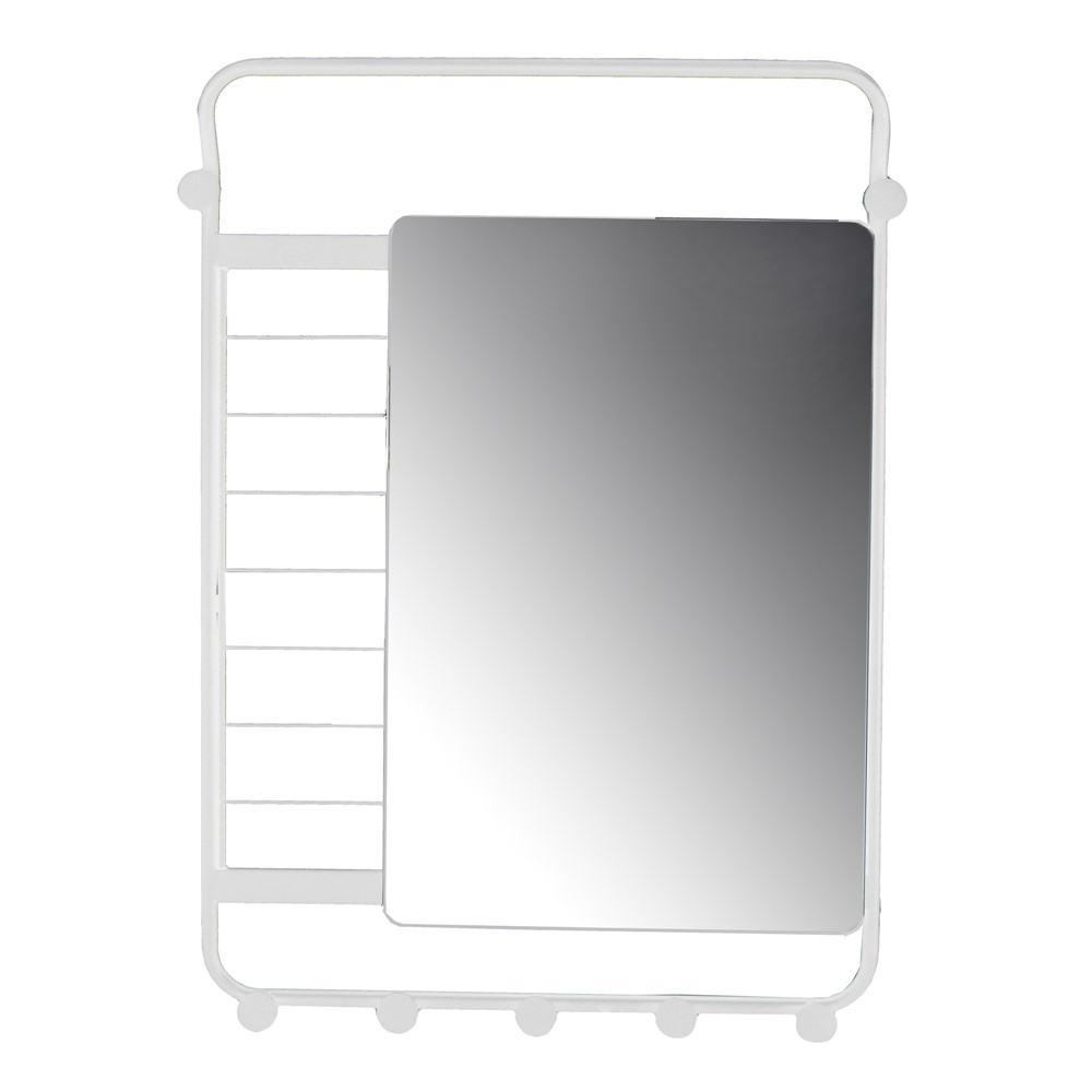Pasqyrë e përkryer për adhuruesit e elegancës, e cila do të duket perfekte në tualetin e shtëpisë tuaj. Dekorimi i pasqyrës me kornizë metalike moderne në ngjyrë të bardhë krijon një atmosferë klasike dhe të qetë. Shtimi i varëses së rrobave në fund të saj është perfekte për varjen e peshqirave të vegjël.