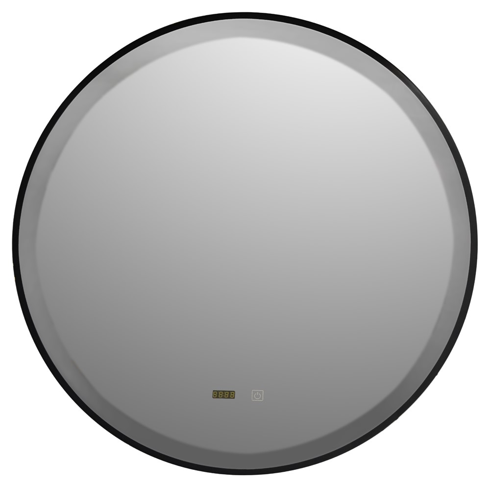Pasqyrë rrethore me ndriçim LED, kornizë alumini, ndezja/fikja me prekje, me orë dhe temperaturë, 80x80 cm