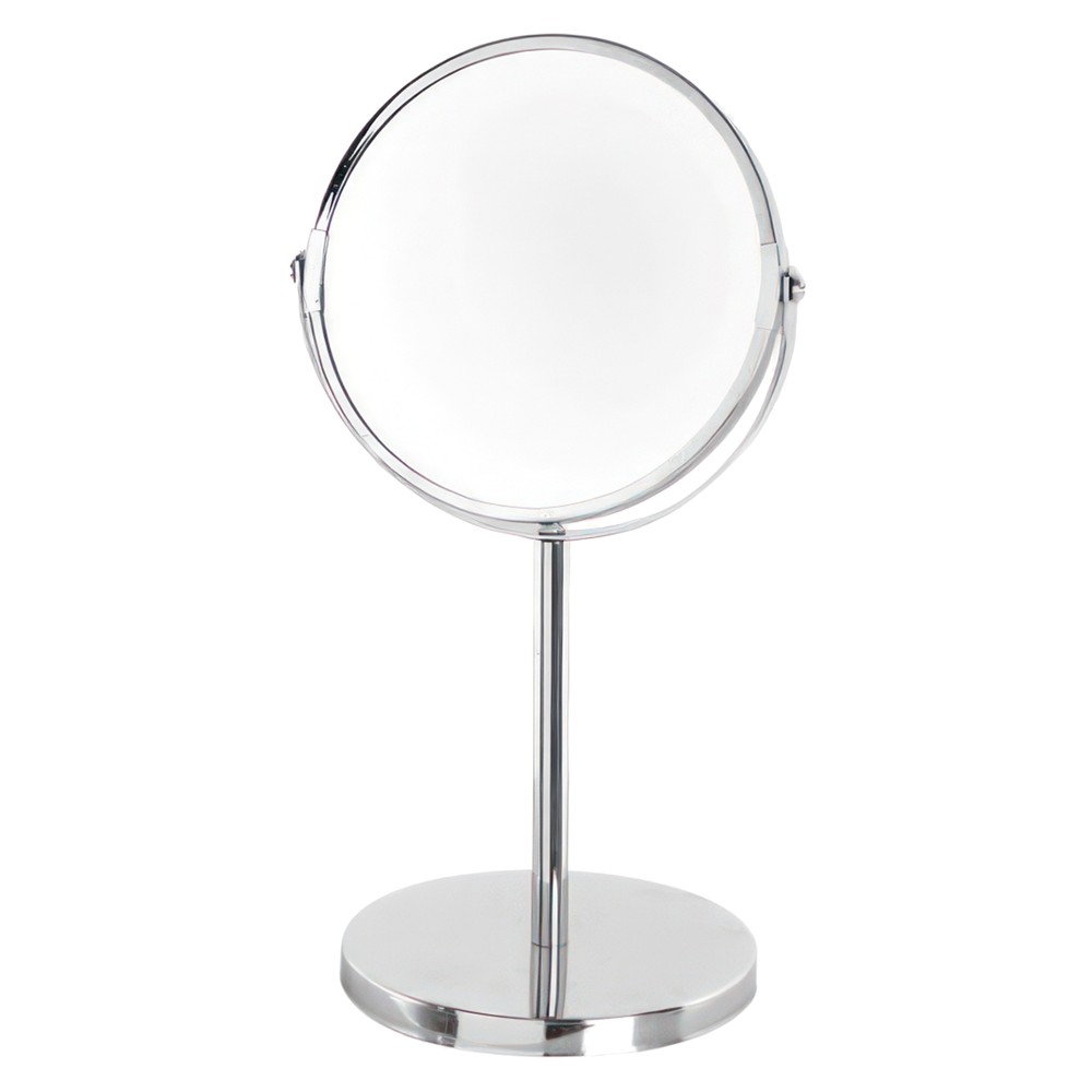 Pasqyrë kozmetike me dy anë, prej materiali qelqi dhe hekuri. Ky produkt është i pajisur me mbajtëse metalike që e bën të përshtatshëm për t'u vendosur mbi sipërfaqet e tavolinave. Pasqyra është e rrotullueshme për të lejuar përdorim nga të dyja anët.
