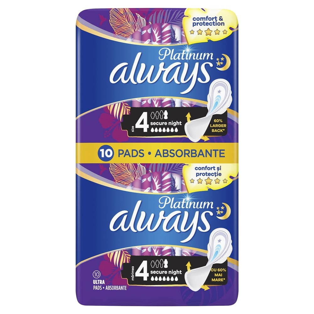 Peceta higjienike, Always, Duo Platinum Night Secure, 10 copë