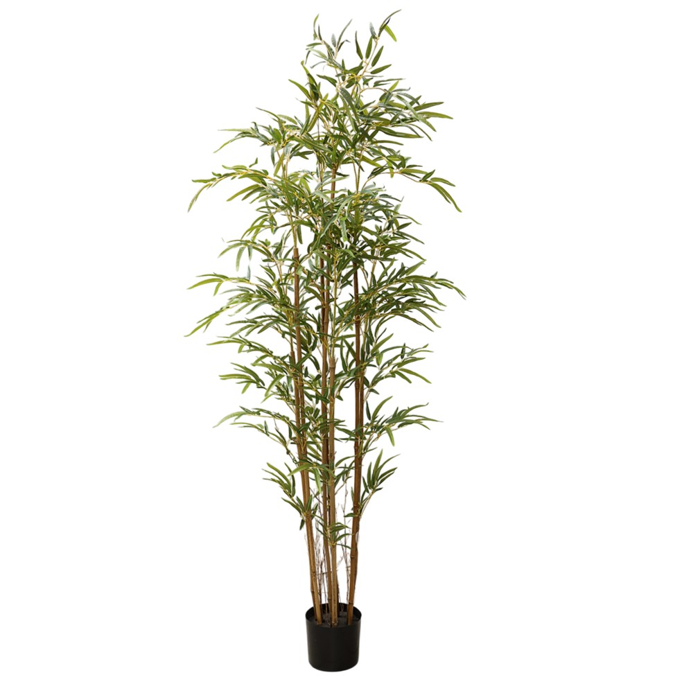 Kjo pemë artificiale bambu sjell një ndjesi qetësie dhe harmonie në çdo ambient, duke kombinuar elegancën e thjeshtë me stilin tropikal. Me gjethe në ngjyrë jeshile natyrale dhe e vendosur në një vazo të zezë moderne, kjo pemë është realizuar nga plastikë cilësore dhe arrin një lartësi prej 180 cm. Ideale për ambiente të brendshme apo të jashtme të mbuluara, ajo është zgjidhja perfekte për ata që duan bukurinë e gjelbërimit pa pasur nevojë për mirëmbajtje.