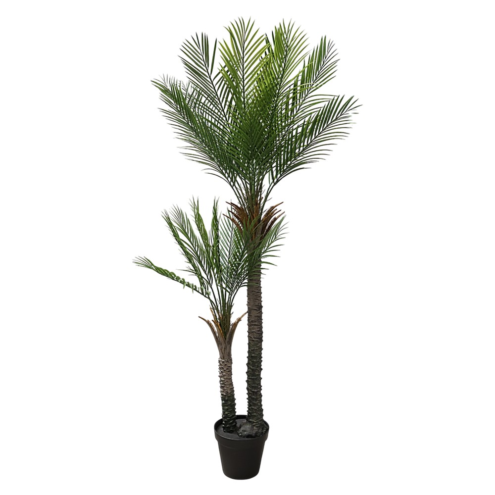 Një palmë artificiale në një vazo plastike është një dekorim i shkëlqyeshëm për shtëpinë, zyrën ose dyqanin tuaj. Përpunimi i kujdesshëm e bën produktin në mënyrë shumë të ngjashme me një bimë të vërtetë, falë së cilës brendësia e pasuruar me një bimë artificiale bëhet jashtëzakonisht komode. Pema ka një lartësi prej 190 centimetra, duke e bërë atë një element të përshtatshëm për të dekoruar ambiente të ndryshme në shtëpi, zyrë, ose ambiente tjera.