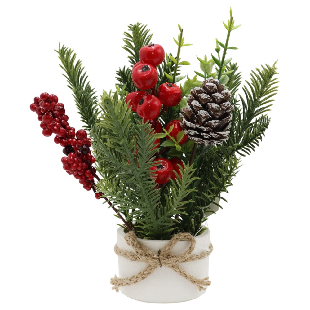 Small Christmas tree, green color, red decorations, 25 cm