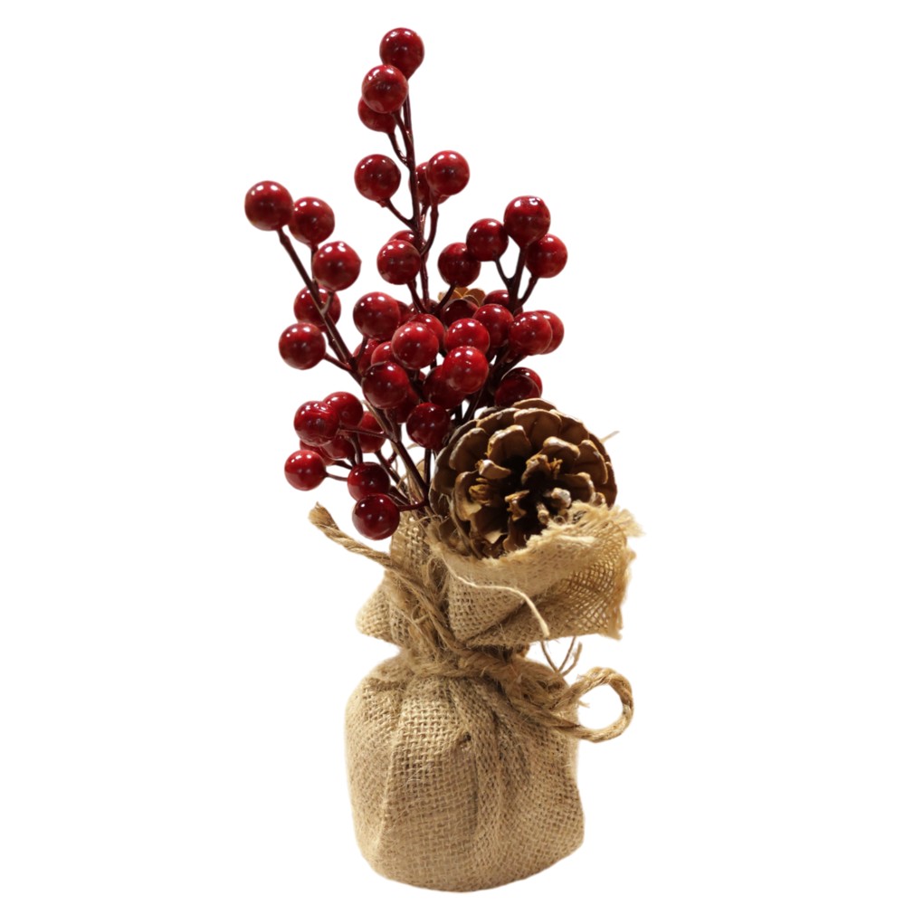 Po vlerësoni:Pemë tavoline dekoruese, jute/plastikë, e kuqe, 25 cm
