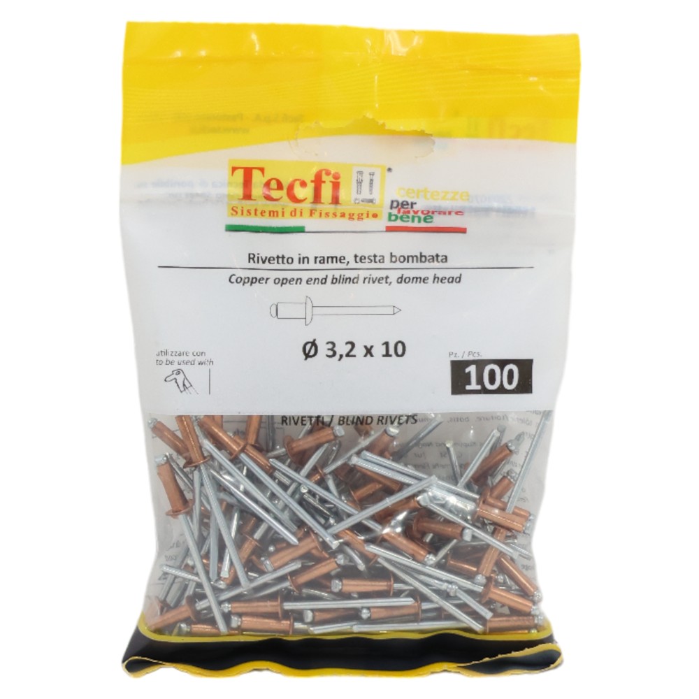 Po vlerësoni:Open end dome head blind rivets, copper/zp steel, Ø 3,2x10mm, Bag 100