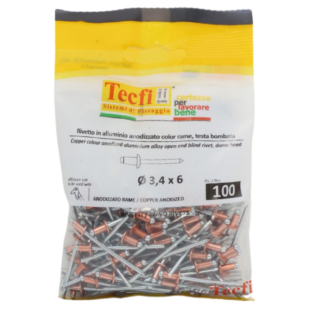 Perçina alumini anodizuara me ngjyrë bakri /çeliku, Ø 3,4 x 6mm , Bag 100