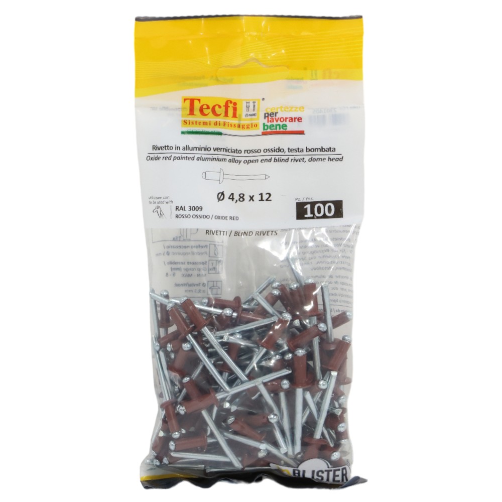Perçina Alumini/çeliku RAL 3009, Ø 4,8x12mm , Bag 100