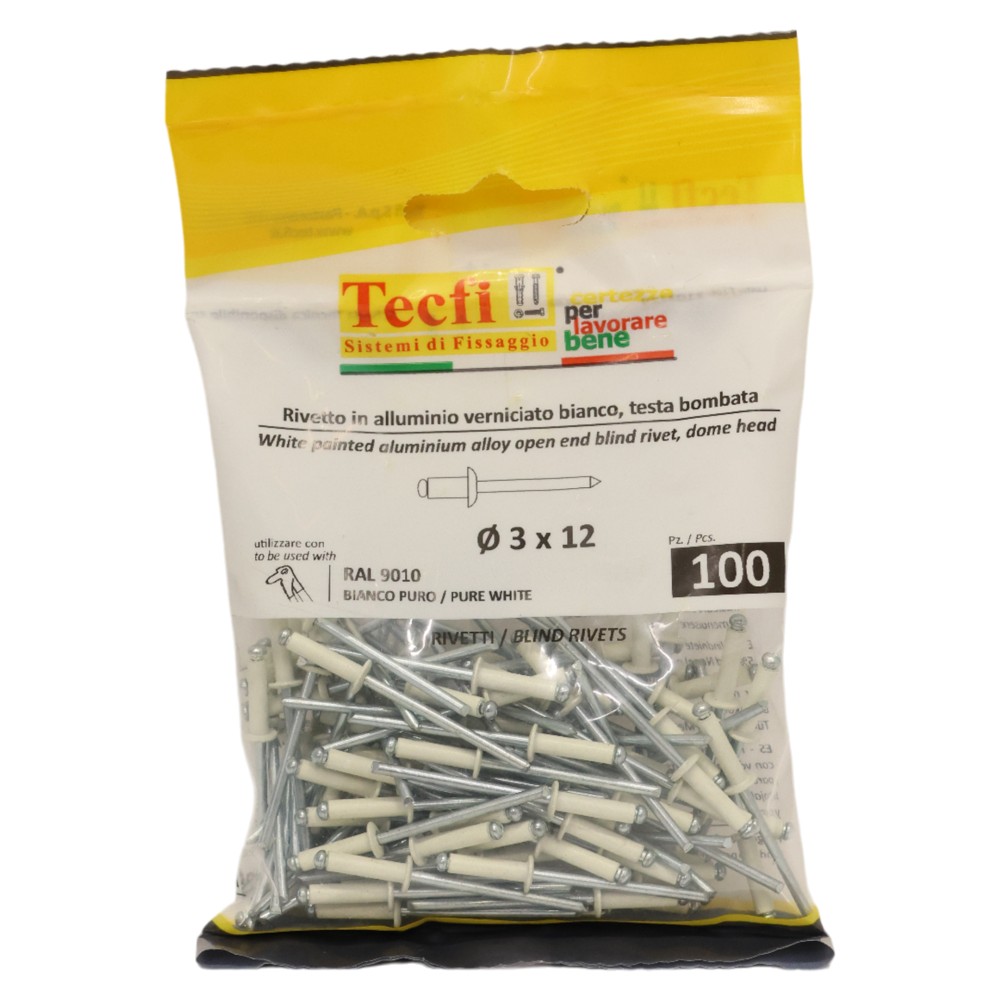 Perçina Alumini/çeliku RAL 9010, Ø 3x12mm , Bag 100