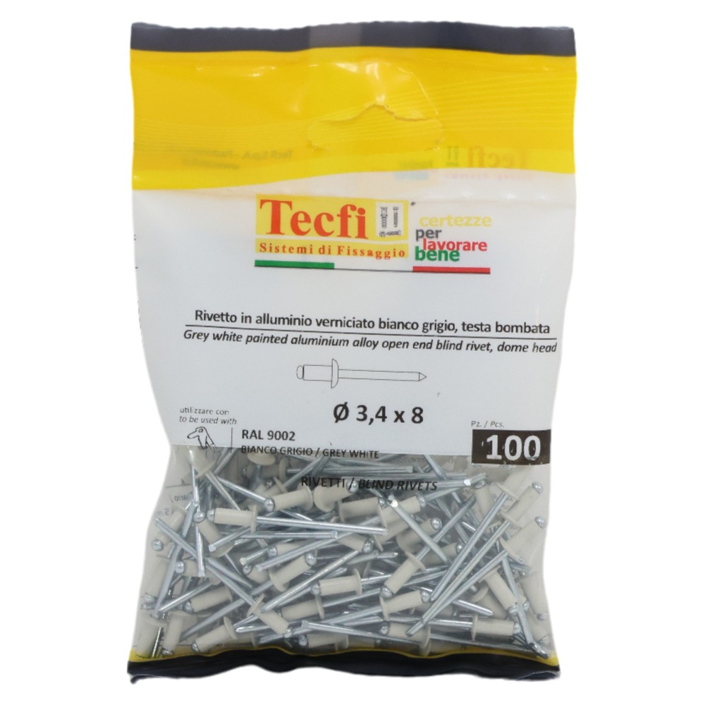 Perçina alumini RAL 9002 alumin/çeliku, Ø 3,4x8mm , Bag 100