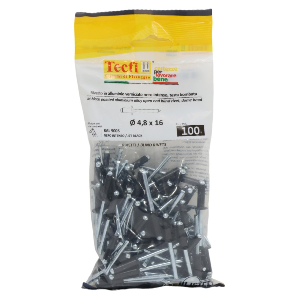 Perçina alumini RAL 9005 alumin/çeliku, Ø 4,8x16mm , Bag 100