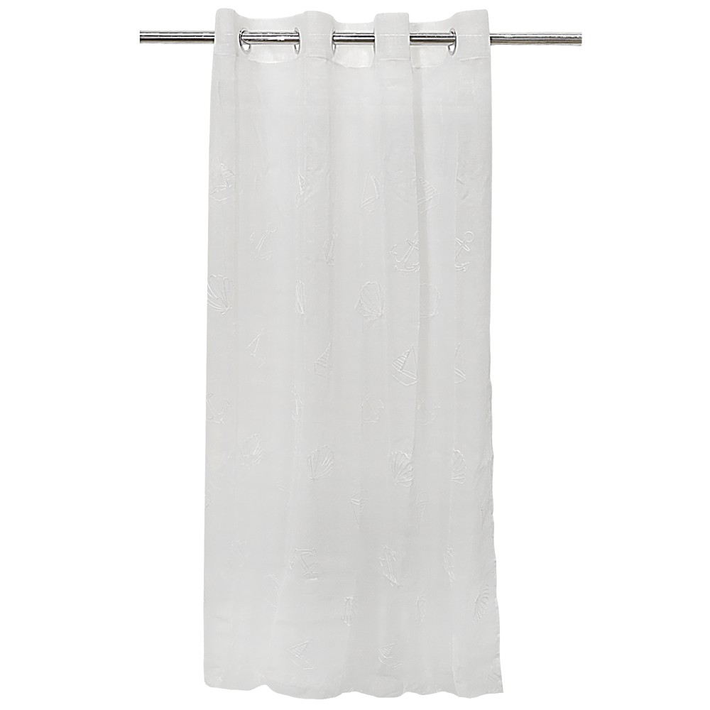 Perde e hollë me unaza, 100% poliestër, e bardhë, 140x260 cm