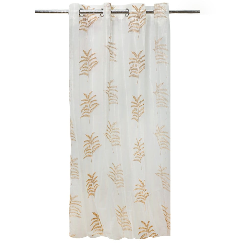 Po vlerësoni:Net curtain with rings , 100% polyester with embroidery, white/taupe, 140x260 cm