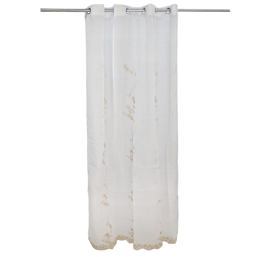 Perde e hollë me unaza, 100% poliestër, e bardhë/floriri, 140x260 cm