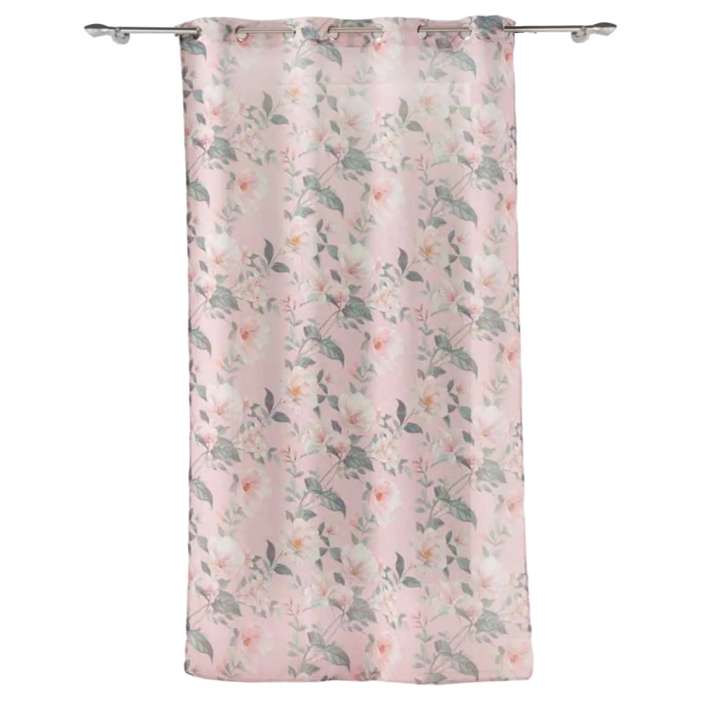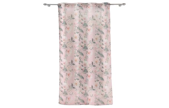 Perde e hollë me unaza, 100% poliestër, rozë me dizenjo, 140x240 cm