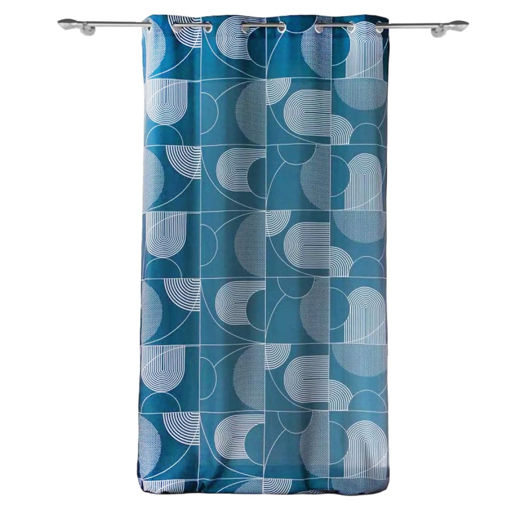 Perde e plotë me unaza, 100% poliestër, blu, 140x260 cm