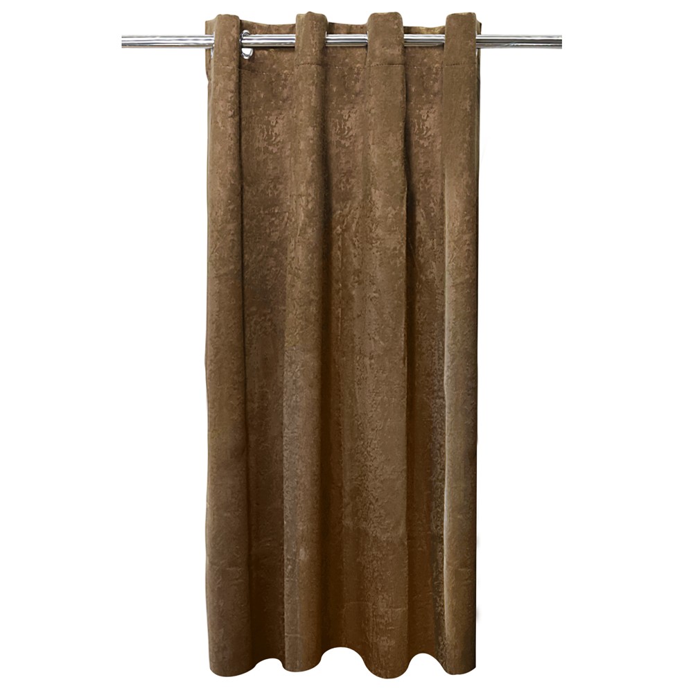 Perde e plotë me unaza, 100% poliestër, jacquard, kafe, 140x260 cm