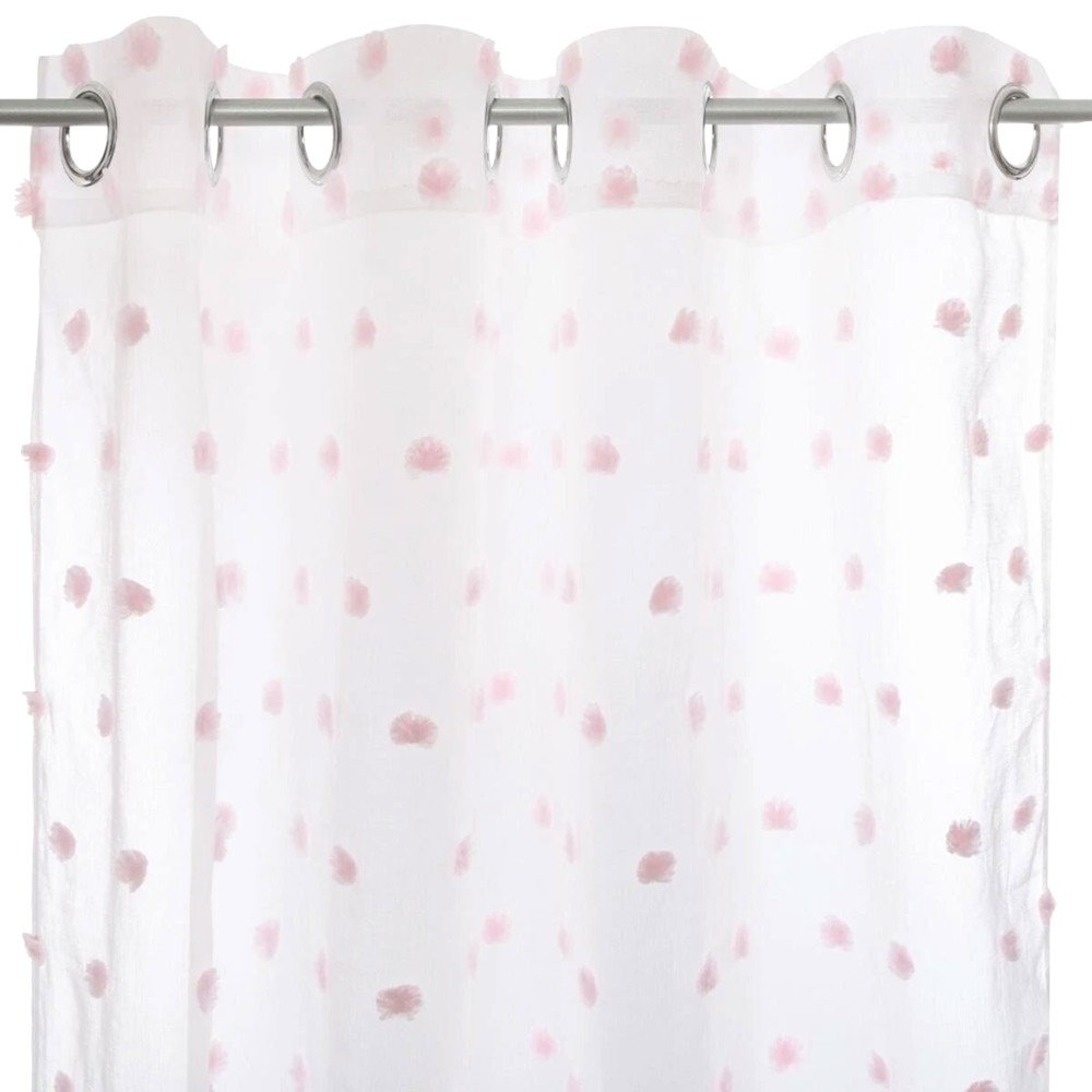 Perde e hollë me dekore pompom për fëmijë, me materjal poliestër. Cilësi shumë e mirë dhe dizajn i thjeshtë. Mundet të përdoret si perde e dytë duke e kombinuar me një perde të trashë ose duke e përdorur si perde të vetme. Perdja është shumë e thjeshtë në vendosje dhe mundet ta hiqni kollaj për ta larë në lavatriçe.
