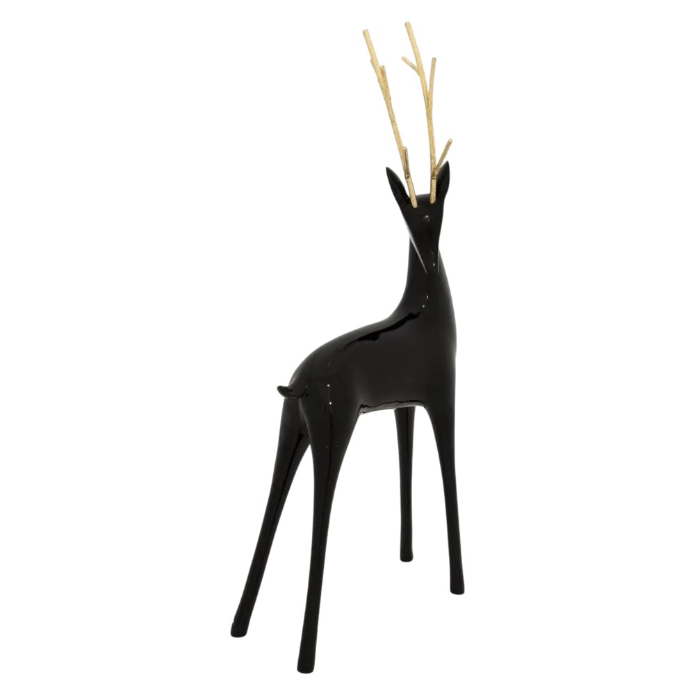 Decorative character, polyresin, Deer, black color with gold, L. 19.5 x D. 9 x H. 40 cm