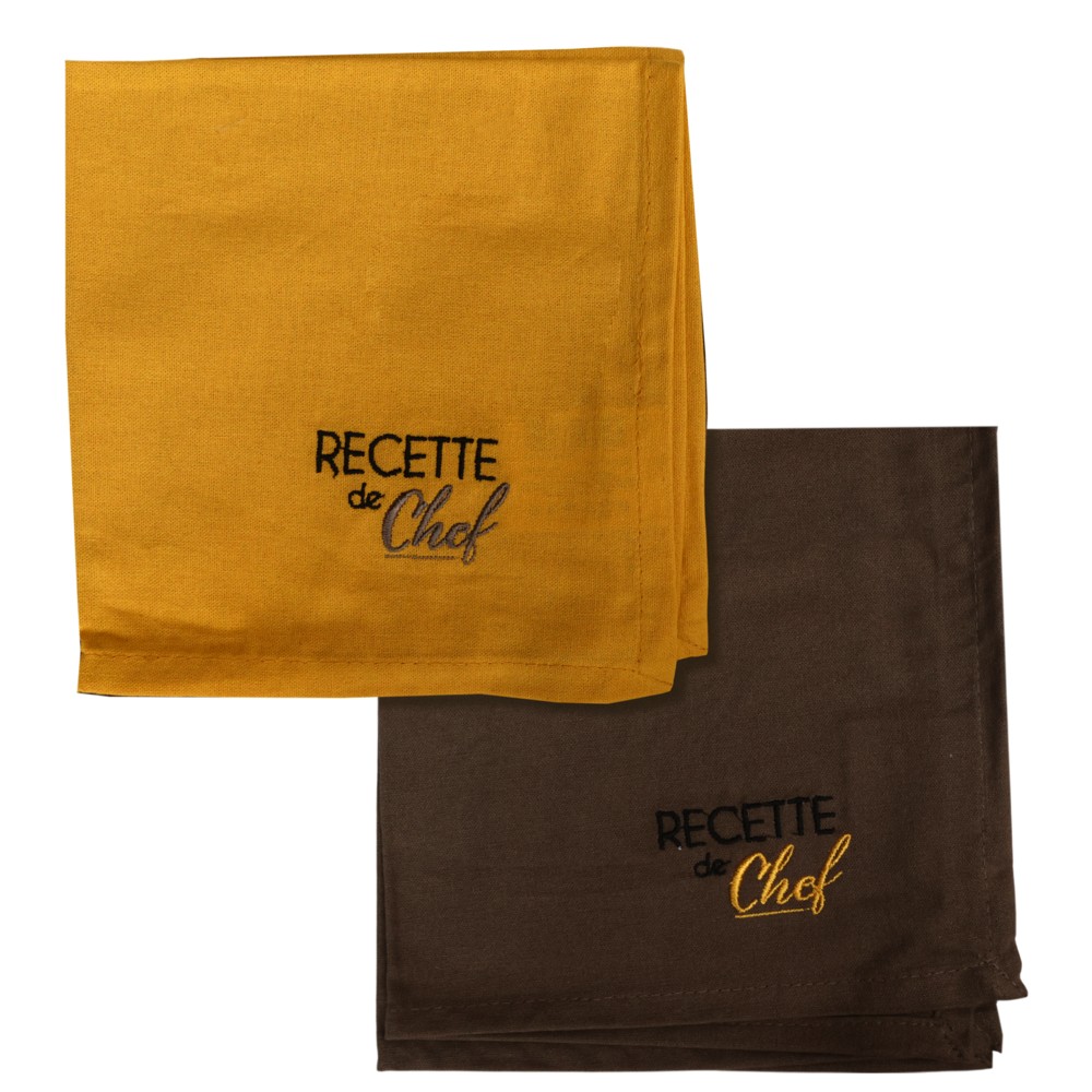 Kitchen towel Duo (Pck2), 100% cotton, mustard/dark grey, 40x40 cm