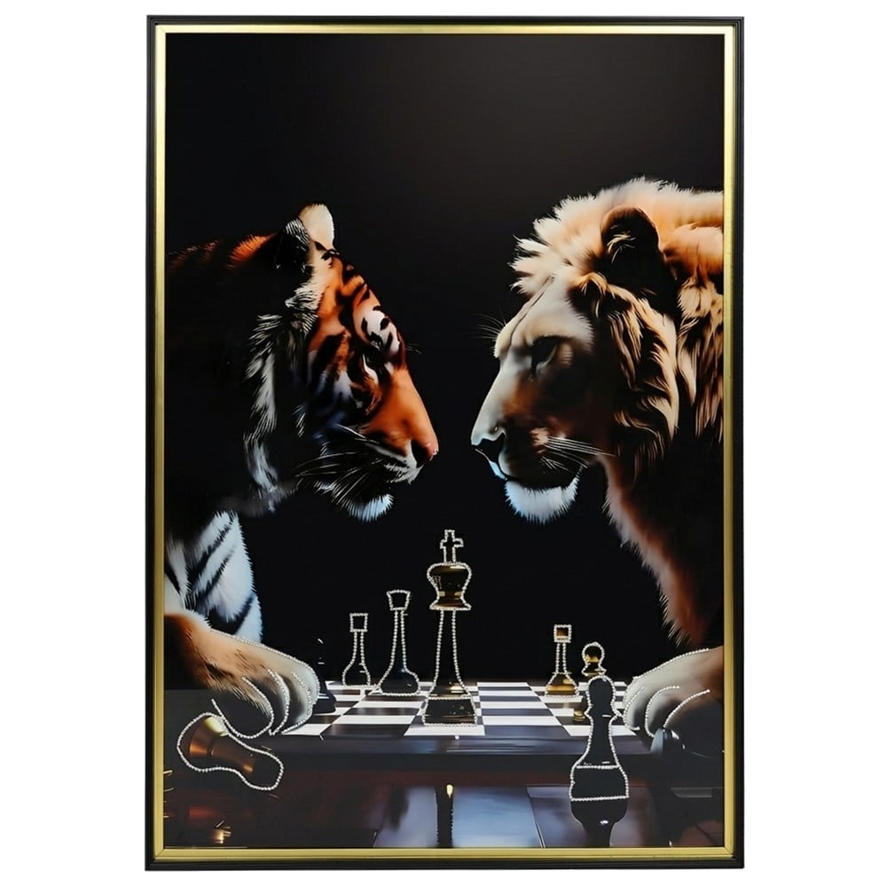 “The Battle” është një pikturë shumëngjyrëshe në kornizë metalike me përmasa 80x120 cm. Në të paraqiten një tigër dhe një luan, simbol i forcës dhe i kurajos. Ngjyrat e gjalla dhe kontrastet e forta i japin pikturës energji dhe lëvizje. Kjo vepër është perfekte për ambiente që duan një detaj me fuqi dhe karakter. Ajo sjell një atmosferë dinamike dhe mbresëlënëse në çdo hapësirë ku ekspozohet.