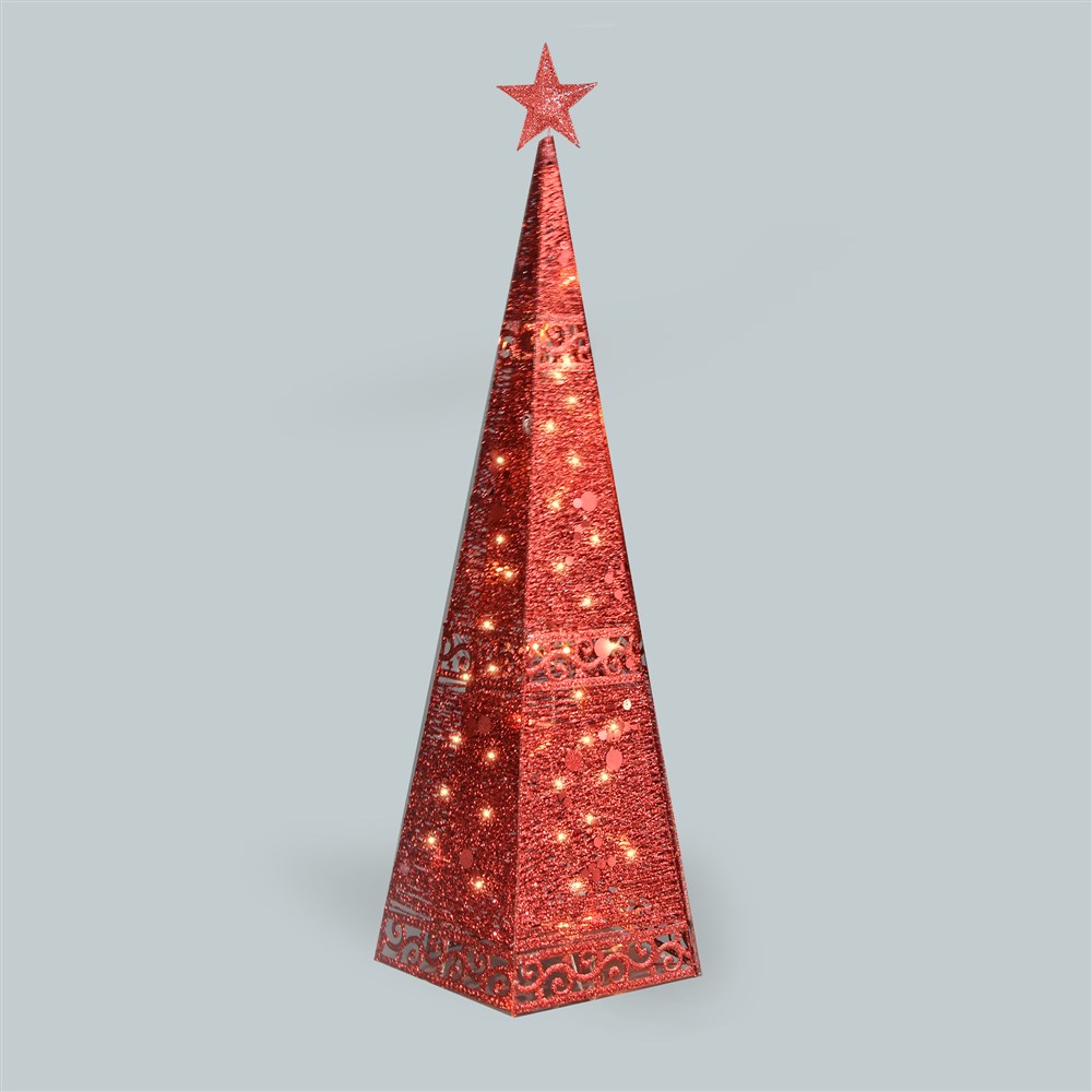Piramidë dekorativ me drita LED, 3000 K, ngjyrë të kuqe, IP44, H80 cm