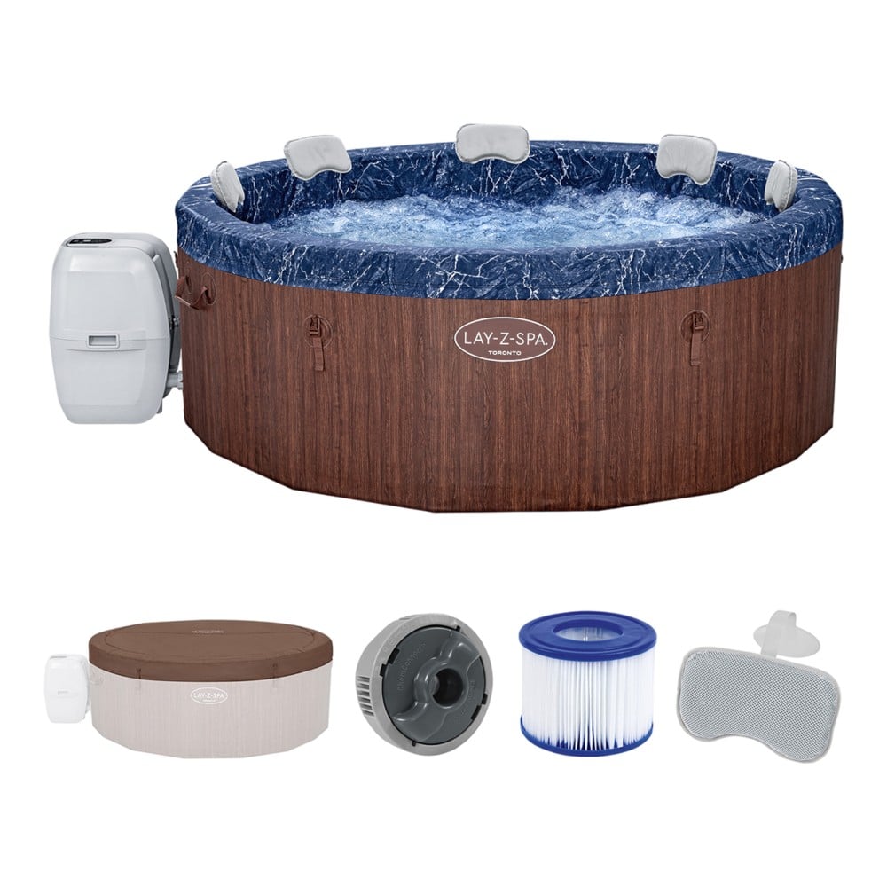 Nje pishine ne kopsht nuk ju mjafton me dhe po kerkoni alternativen perfekte si per ditet e nxehta ashtu edhe per ato te ftohta? Perfitoni nga pishina me hidromasazh qe mund ta keni edhe ne shtepine tuaj. Momenti kur ditet behen me te ftohta eshte koha e persosur per tu relaksuar ne ujin e ngrohte. Kjo pishine me hidromasazh eshte nje relaksim i mrekullueshem per ju dhe te dashurit tuaj. Spa-ja karakterizohet nga mure te trasha e te fryra, te cilat do te jene perfekte si mbeshtetese kur perdorni banjen. Rezervuari mund te strehoje 5 deri ne 7 te rritur. Gjithashtu nuk do te duhet te shqetesoheni per pastertine e ujit, pasi kjo do te sigurohet nga pompa e filtrit te perfshire ne komplet. Mbulesa e perfshire ne komplet do te siguroje gjithashtu pasterti ne Spa-ne tuaj te fryre dhe mbrojtje kunder insekteve te padeshiruara qe bien ne uje. Dyshemeja e bute e izoluar siguron rehati ne perdorim dhe mbron ujin nga ftohja nga toka. Komoditet shtese ofrojne edhe jasteket e perfshire ne komplet. Funksioni i perfshire i ngrohjes automatike Freeze Shield™ parandalon ngrirjen e komponenteve te brendshem ne temperatura me te uleta. I projektuar me teknologji inovative te dimerimit, sistemi ruan temperaturat e brendshme midis 6º dhe 10ºC per te parandaluar demtimin.