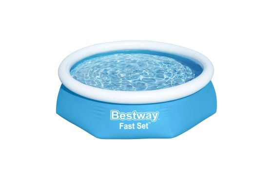 Pishinë portative me fryrje, në formë rrethore, prej materiali kloruri polivinili (PVC), të përforcuar dhe të testuar paraprakisht, me një trashësi prej 0.32 cm, që e bën të qëndrueshme ndaj rrezeve të diellit, temperaturave të ftohta dhe gurëve apo objekteve të tjera të mprehta. Pastrohet lehtësisht nëpërmjet një valvule kullimi të vendosur në bazën e pishinës. Pishina ka përmasa Ø244x61 cm dhe kapacitet mbajtës të ujit prej 1,880 litrash. Mund të montohet dhe çmontohet lehtësisht për vetëm 10 minuta, duke përdorur një pompë ajri. Seti gjithashtu përmban copëza riparimi vetë-ngjitëse, prej materiali vinili (PVC), të cilat përdoren për riparimin me efikasitet të dëmtimeve të vogla të strukturës. Ky produkt është i përshtatshëm për përdorim nga fëmijë të moshës mbi 3 vjeç. Perdorimi afatgjat i pishinave duhet shoqeruar me nenshtresat perkatese ( k: 790090, 795355, 820112, 820113 )