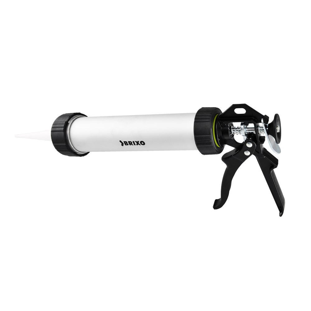 Pistoleta e silikonit me përmasë 9'' (23 cm) shërben për të shpërndarë silikonin dhe materiale të tjera. Me strukturë alumini. Materiali rrjedh direkt në hundën e pistoletës.