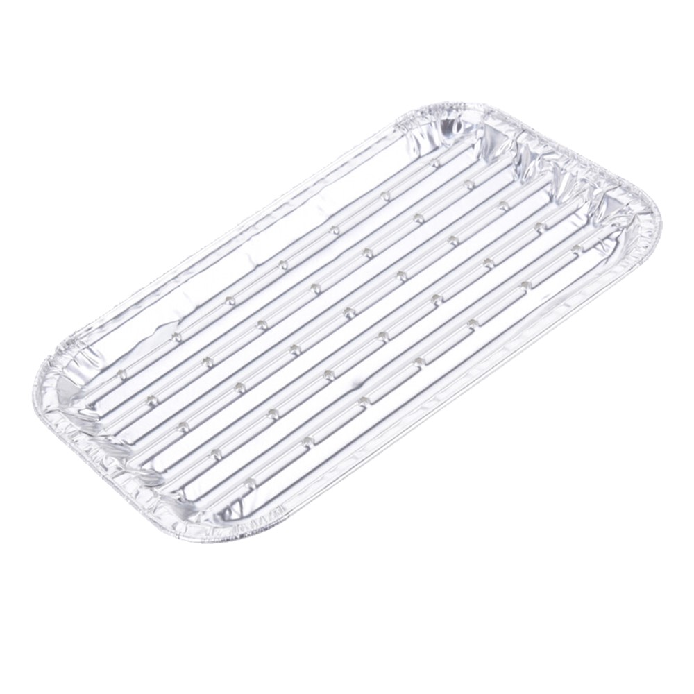 Pjatë e perforuar për barbekju, prej materiali alumini, me përmasa 18.5x11.5x1 cm, në ngjyrë argjendi. Përdoret për të mbajtur ushqimet të ngrohta, duke ruajtur temperaturën e tyre edhe pas pjekjes, si dhe mund të përdoren për pjekjen në barbekju në mënyrë indirekte të mishit, peshkut apo perimeve. Materiali përbërës ka densitet dhe peshë të ulët, ka koeficient të lartë të përcjelljes termike, është rezistent ndaj gërryerjes, është jo-toksik dhe ka veti anti-bakteriale dhe higjienike në përdorim. Ky produkt është i përshtatshëm për përdorim profesional në restorante dhe kuzhina, dhe për përdorim jo-profesional në ambiente shtëpie.