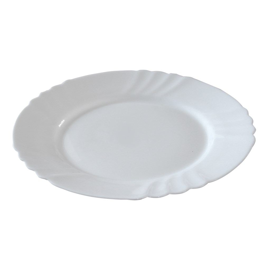 Pjata EBRO me formë rrethore dhe material arkopal të bardhë shërben si pjatë antipaste. Me përmasë 26 cm kjo pjatë shumë elegante dhe cilësore i shton finesë dhe hijeshi tavolinës tuaj. Mund të përdoret në vaktet e përditeshme, bankete, gëzime familjare.
